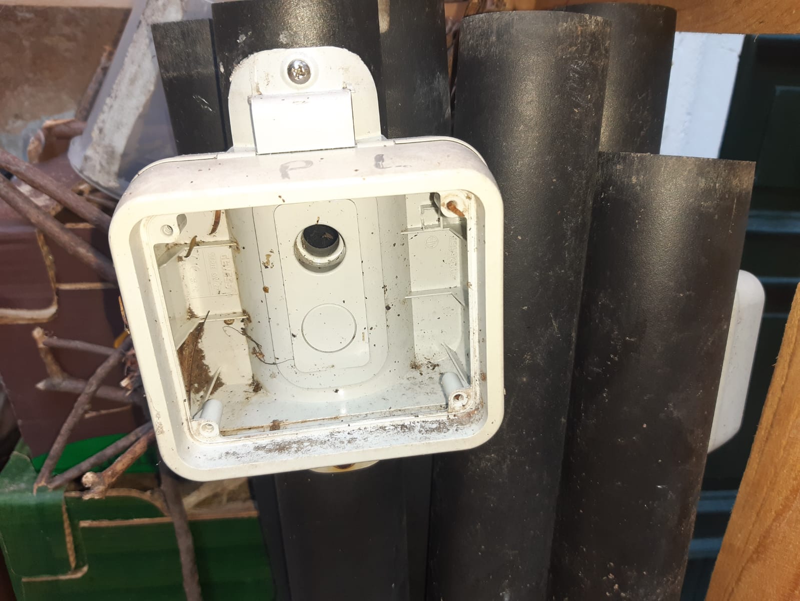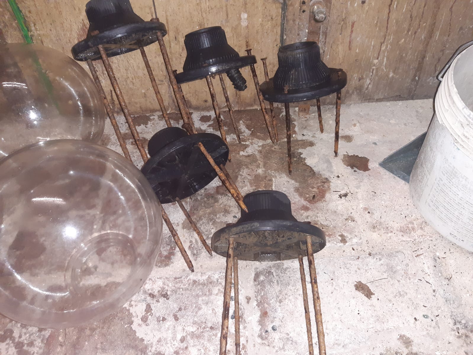 Materiale plastica. Sono completi di base, palo, portalampada e globo trasparente.
